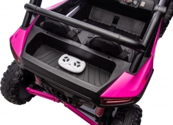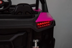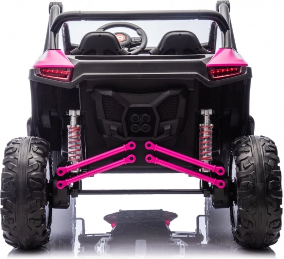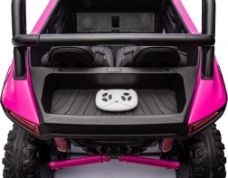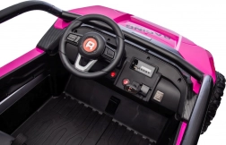 Ten dziecięcy pojazd elektryczny jest wyposażony w 4 silniki o mocy 120 W każdy oraz akumulator 24V/7Ah, co gwarantuje mocną wydajność i długi czas jazdy. Posiada zdalne sterowanie 2.4 GHz z trzema poziomami prędkości oraz przyciskiem bezpieczeństwa Stop dla maksymalnego bezpieczeństwa.