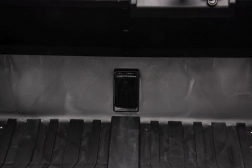 - Otwierane drzwi z blokadą oraz pasy bezpieczeństwa na podwójnym siedzeniu pokrytym czarną ekoskórą.