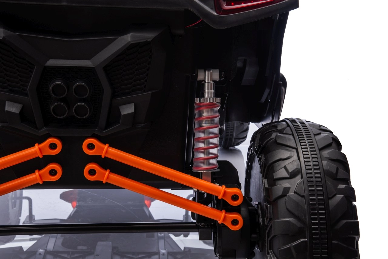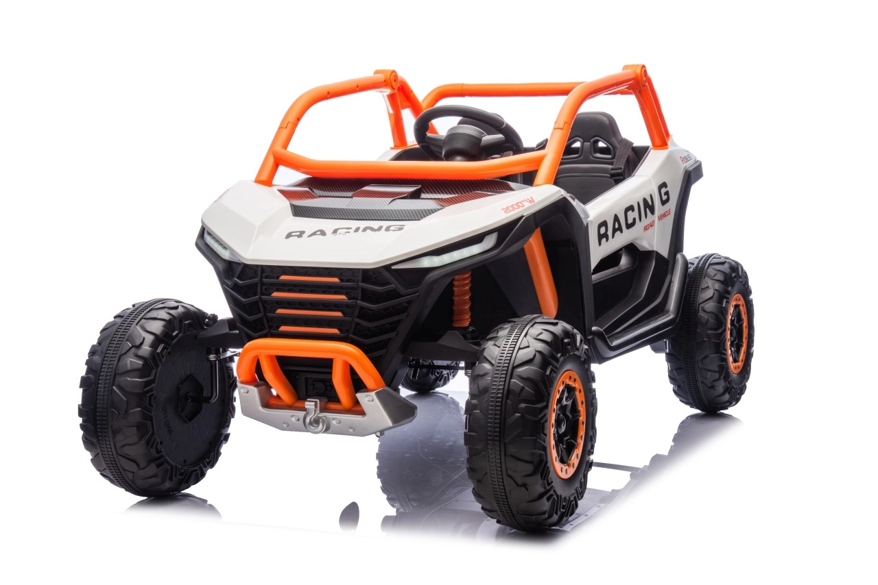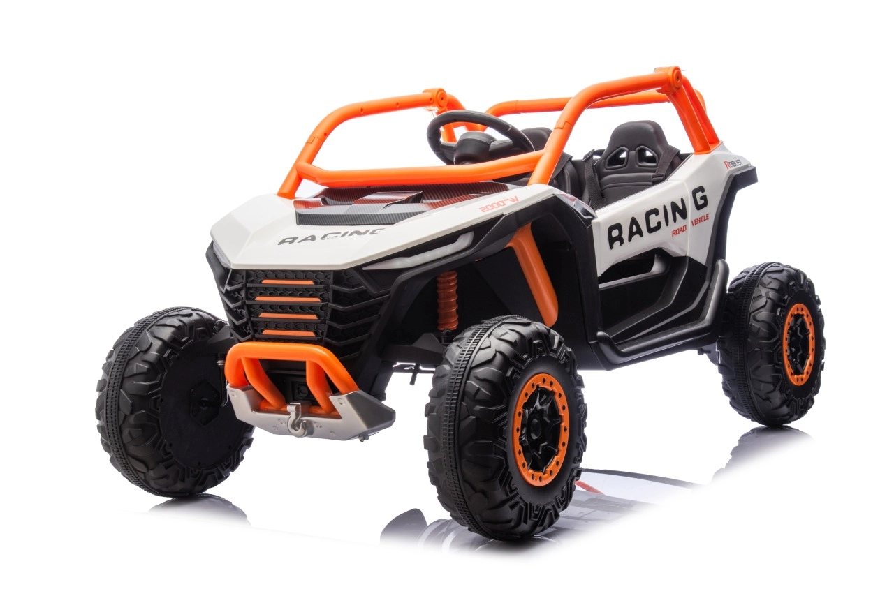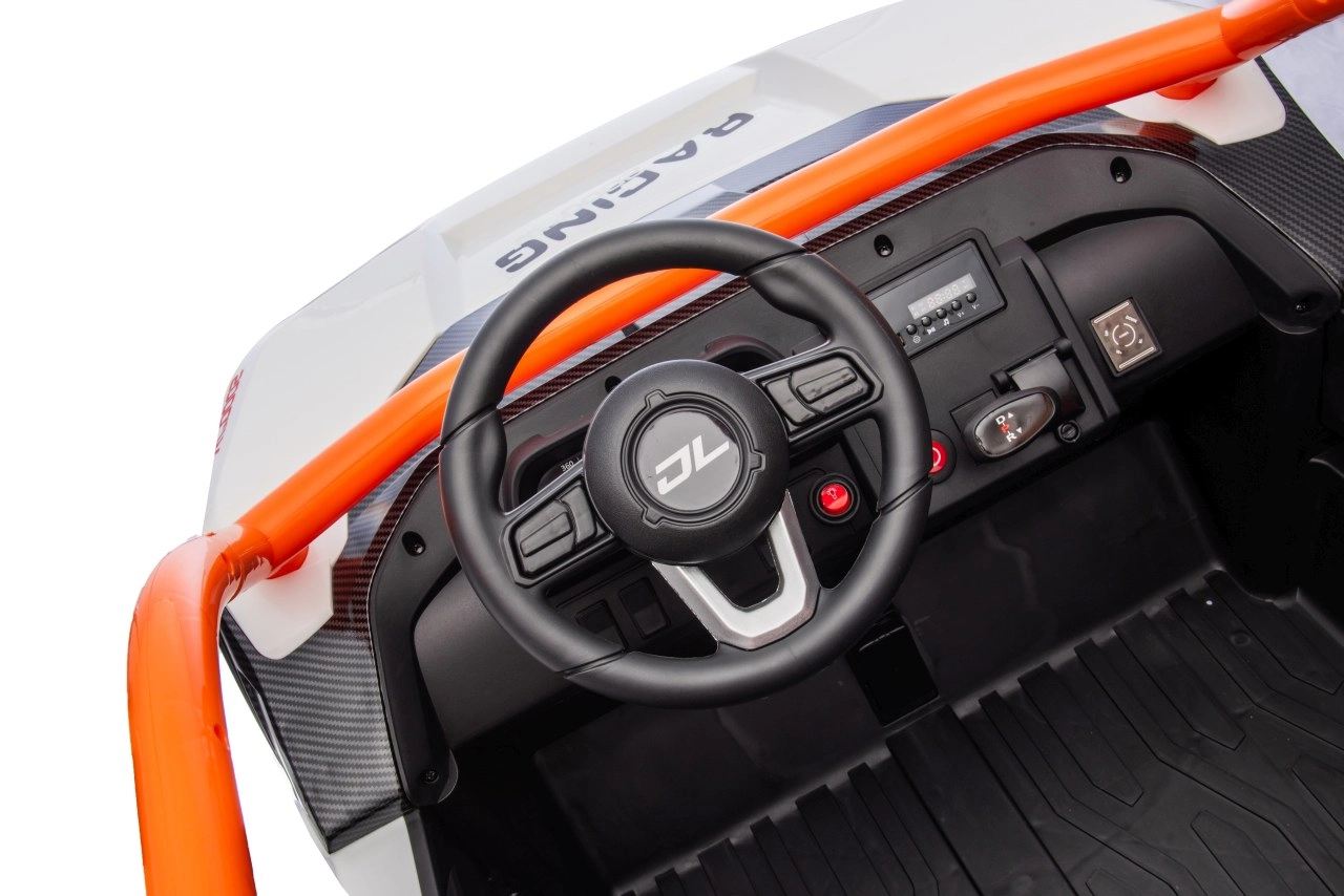 Dziecięcy elektryczny pojazd RACING Road zapewnia wszechstronne wrażenia dzięki zaawansowanym funkcjom. Pojazd jest wyposażony w cztery silniki o mocy 120 W, które zapewniają płynną jazdę po różnych nawierzchniach.