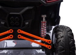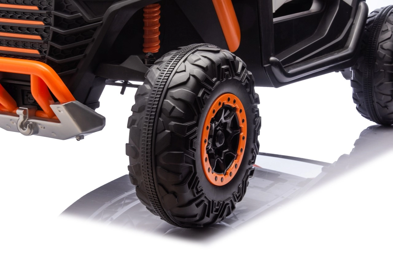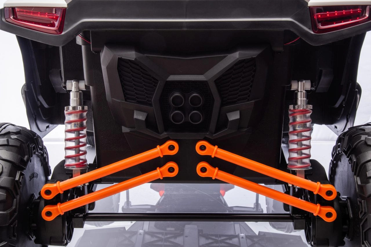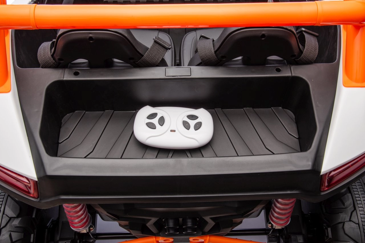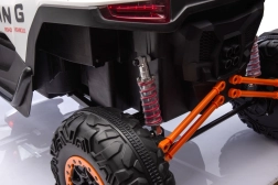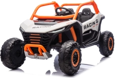 Dziecięcy elektryczny pojazd RACING Road zapewnia wszechstronne wrażenia dzięki zaawansowanym funkcjom. Pojazd jest wyposażony w cztery silniki o mocy 120 W, które zapewniają płynną jazdę po różnych nawierzchniach.