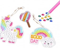 Wzory i miejsca na przyklejenie diamentów są oznakowane – nie trzeba mieć specjalnych umiejętności, aby tworzyć oryginalne naklejki i breloczki. To relaksacyjna aktywność, która rozwija koncentrację, cierpliwość i zręczność manualną. Idealna zarówno do twórczości indywidualnej, jak i zabawy z rodziną.