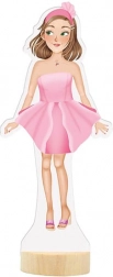 - Lalka, 30 magnetycznych elementów (ubrania, buty, akcesoria), drewniana podstawka