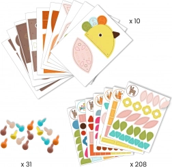 Zestaw kreatywny od DJECO przeznaczony dla dzieci od 3 lat zawiera ponad 200 dużych naklejek. Złóż misia, lisa i ptaszka za pomocą elementów łączących.
