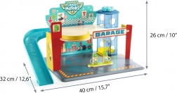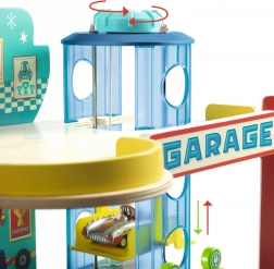 Drewniany garaż od Djeco to ilustrowana zabawka, która idealnie pasuje do świata Crazy Motors. Zawiera łatwy w obsłudze podnośnik, odłączane akcesoria i oferuje zabawne możliwości parkowania.
