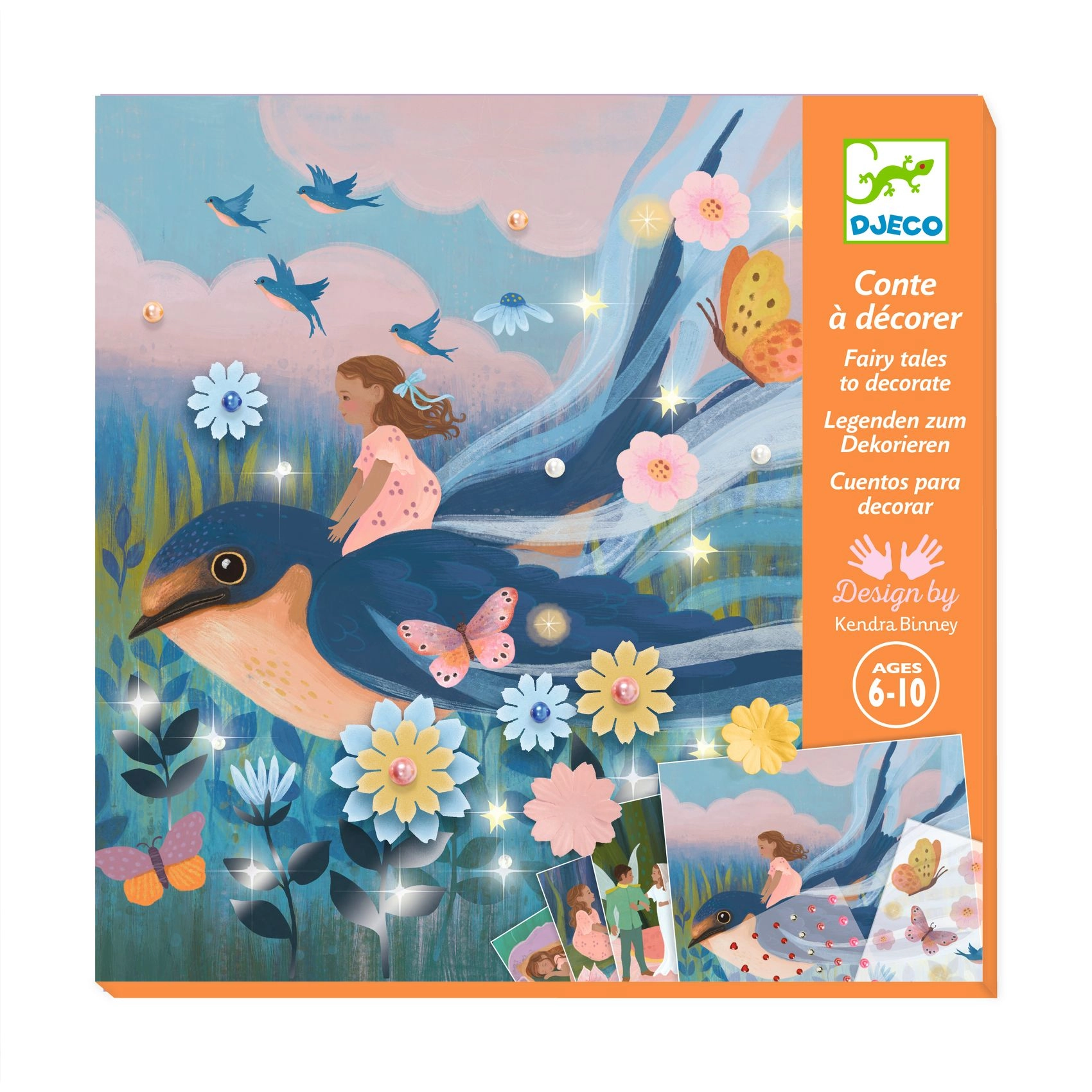 DJECO Bajki do tworzenia Calineczka to kreatywny zestaw, który oferuje niezliczone możliwości ozdabiania papierowych scen za pomocą naklejek, kalkomanii i papierowych kwiatów. Świetna zabawa dla małych artystów.