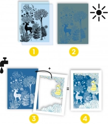 Dzięki temu fascynującemu zestawowi możesz stać się twórcą unikalnych projektów, które pojawiają się na papierze pod wpływem światła. Wystarczy wystawić papier na działanie promieni słonecznych i obserwować, jak na ciemnym tle zarysowują się cieniowe wzory.