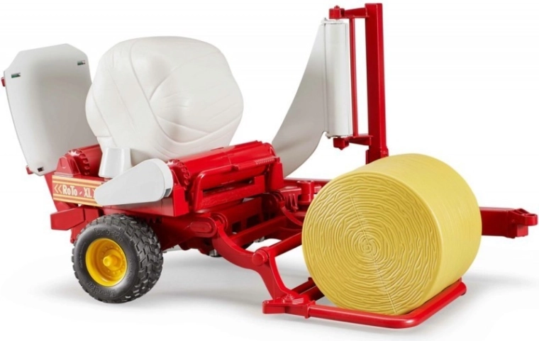 Konstrukcja z wysokiej jakości tworzywa ABS gwarantuje długą żywotność, precyzyjne wykonanie i płynną pracę ruchomych części. W zestawie znajdziesz dwie bele – białą i żółtą – a owijarka jest kompatybilna z belami BRUDER BR12315 i BR02345.
