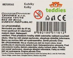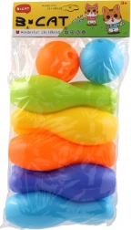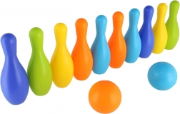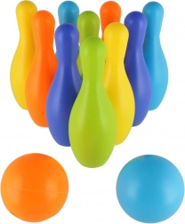Kręgle i piłeczki są utrzymane w żywych kolorach, takich jak pomarańczowy, zielony, żółty i niebieski, co czyni je atrakcyjną zabawką dla dzieci.