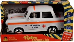 Auto pogotowia ratunkowego z napędem bezwładnościowym z kolekcji Retro ratownicy jest idealne dla małych fanów starych samochodów. Dzięki designowi i funkcjom, takim jak dźwięki silnika i otwierane drzwi, przynosi autentyczne doświadczenie.