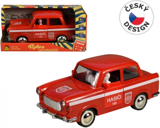 Ten plastikowy strażacki samochód z kolekcji Retro ratownicy oferuje realistyczną zabawę dla dzieci i dorosłych. Funkcje: