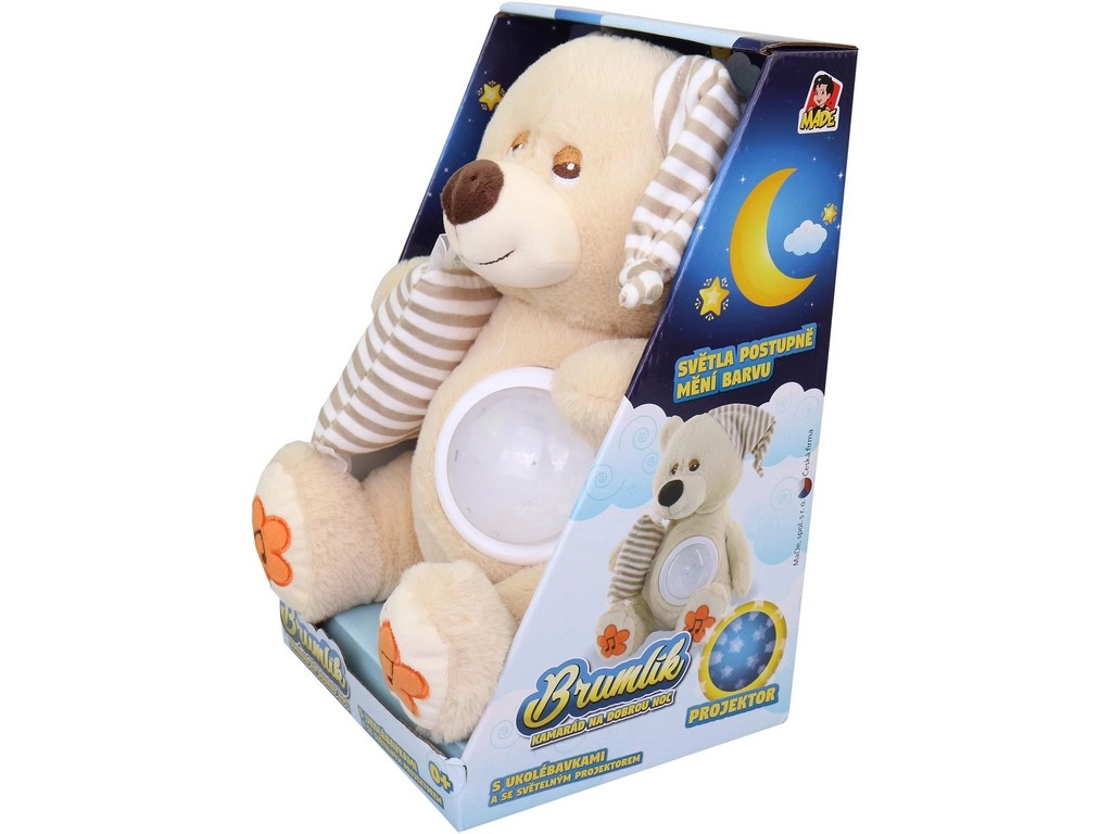MaDe Miś Brumlík to wspaniały towarzysz na dobranoc dla najmłodszych. Dzięki kołysankom i projektorowi pomaga Twojemu dziecku łatwiej zasnąć.