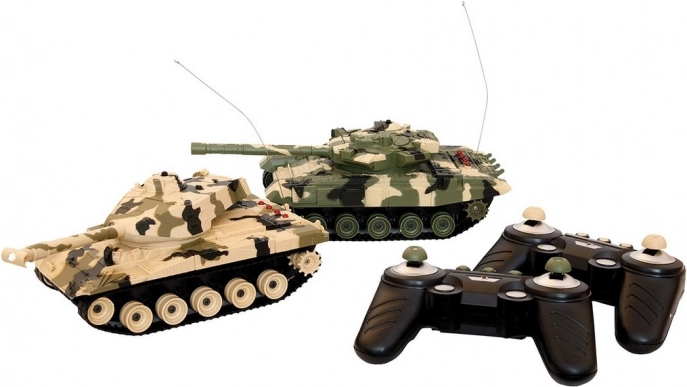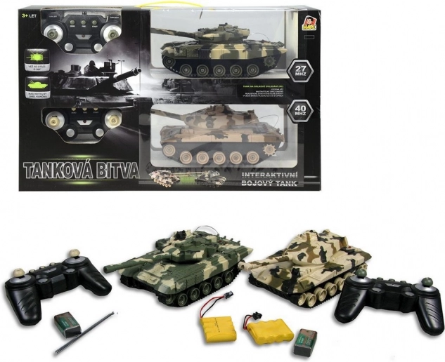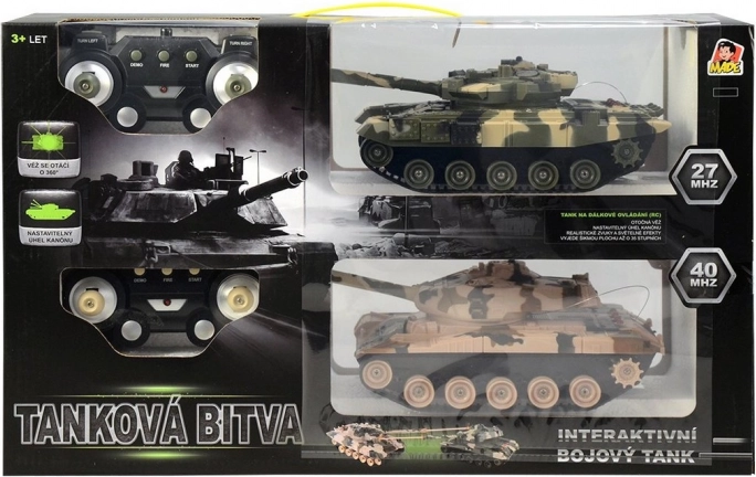 Ten zestaw czołgów oferuje bogatą, interaktywną rozrywkę z realistycznymi funkcjami bojowymi. Częstotliwości 27/40 MHz zapewniają niezawodne sterowanie do odległości 15 m. Każdy czołg jest wyposażony w lufy dział z diodami IR do rejestrowania trafień. Kontrolery mają spust, który zapewnia prawdziwe wrażenia bojowe. Po trafieniu czołgu słychać dźwięk wybuchu, a diody na wieży czołgu odejmują „życia”.