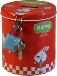 Ta skarbonka świetnie sprawdzi się jako dodatek do dziecięcego pokoju dzięki radosnym kolorom i kompaktowym wymiarom 8 x 7 x 7 cm.