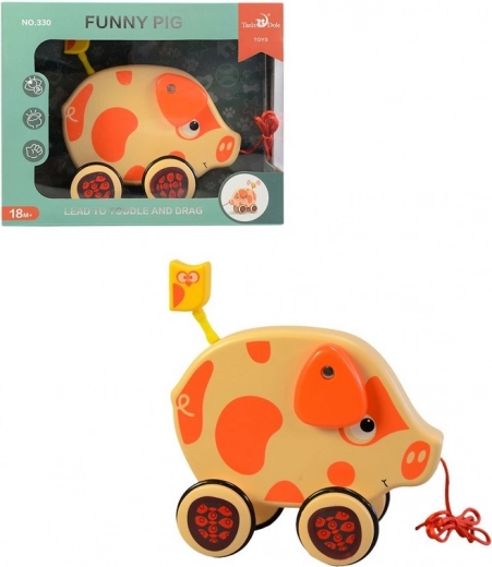 Prosiaczek na sznurku to zabawna zabawka dla dzieci, która dostarczy mnóstwo radości. Wystarczy ciągnąć ją za sznurek, a prosiaczek będzie podążał, ożywiając zabawę wesołym machaniem ogonka.