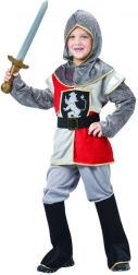 Karnawałowy kostium dla chłopców w stylu rycerza to idealny wybór na dziecięce przyjęcia, bale karnawałowe lub szkolne wydarzenia. Zestaw obejmuje tunikę, kaptur, pasek oraz spodnie z nakładkami, które przemienią każdego chłopca w dzielnego rycerza.