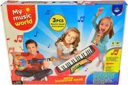 Ten multifunkcyjny zestaw to perfekcyjny wybór dla dzieci, które lubią muzykę i chcą zostać małymi rockowymi gwiazdami. Zestaw zawiera:
