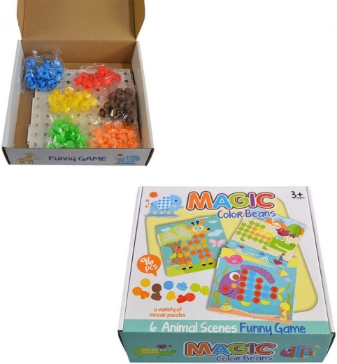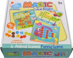 Mozaika z kolorowymi wzorami idealna dla kreatywnych dzieci. Zawiera 6 różnych środowisk, w których żyją zwierzątka. Dzieci mogą uzupełniać ciała zwierzątek za pomocą kolorowych kapelusików.
