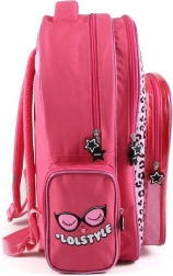 Plecak zdobi atrakcyjny motyw LOL z napisem '#LOLSTYLE' oraz grafika okularów. Odpowiedni dla dzieci, które chcą podkreślić swój styl.