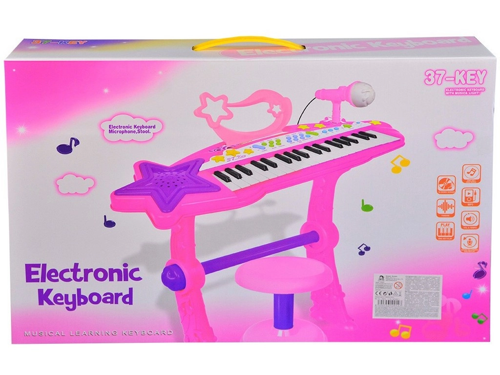 To wspaniałe elektroniczne pianino daje dzieciom radość z muzyki dzięki 37 klawiszom, które umożliwiają granie prostych melodii. Pianino wykonane jest z wytrzymałego plastiku i zaprojektowane tak, aby było atrakcyjne i przyjazne dla dzieci.