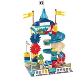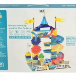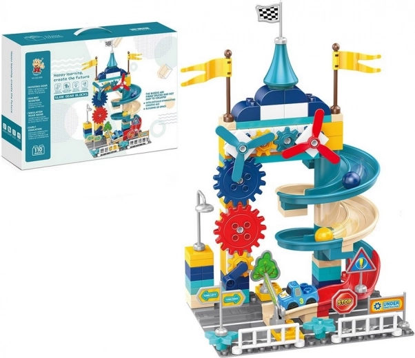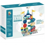 Ten zestaw klocków z torem kulkowym zawiera 110 elementów, które dzieci mogą łączyć i kombinować według własnej fantazji. Zabawka jest wykonana z wysokiej jakości plastiku, który jest bezpieczny i trwały. Klocki łatwo się składają i rozkładają, co ułatwia ich sprzątanie i przechowywanie w dołączonym pudełku.