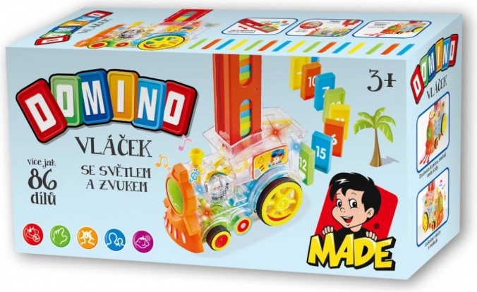 Przezroczysta lokomotywa dla dzieci oferuje zabawę z 86 szt. domino oraz ekscytującymi efektami świetlnymi. Ciesz się muzyczną przejażdżką pełną kolorów i stwórz idealny efekt domina.