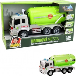 Ta cysterna jest idealną zabawką dla wszystkich chłopców, którzy kochają duże samochody i chcą przeżywać przygody. Zabawka zaprojektowana jest dla dzieci od 3 lat i wykonana z bezpiecznego plastiku. Wymiary zabawki to 26,5 x 10 x 13,5 cm, co sprawia, że jest łatwa w obsłudze i atrakcyjna dla młodych kierowców. Dzięki bezwładnościowemu napędowi oraz dodanym efektom świetlnym i dźwiękowym zabawa będzie jeszcze bardziej ekscytująca.