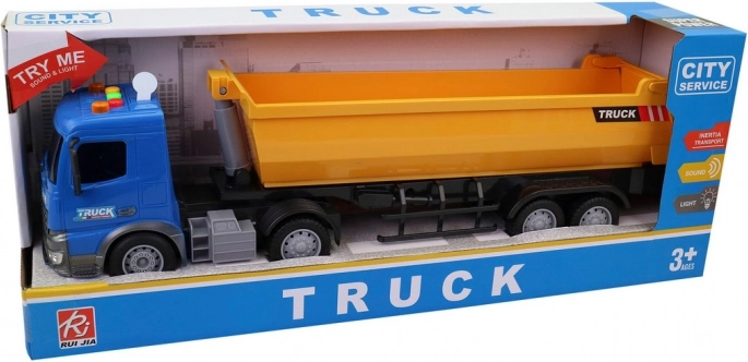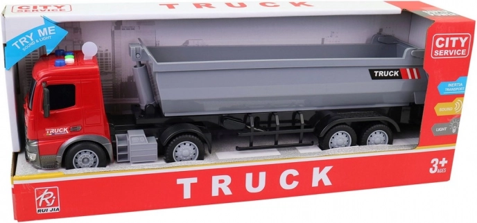 Ciężarówka na napęd bezwładnościowy z oświetleniem i dźwiękiem, idealna zabawka dla chłopców od 3 lat.