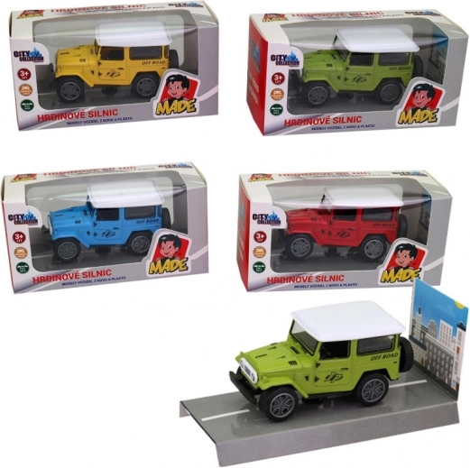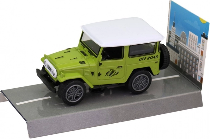 Metalowe auto Jeep z mechanizmem pull-back dla dzieci 3+, idealne dla małych rajdowców.
