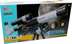 Wymiary teleskopu to 45 x 25 x 9 cm i jest wykonany z trwałego plastiku. Odpowiedni dla dzieci od 6 lat.