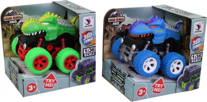 Auto z dużymi kołami w formie dinozaura oferuje wyjątkowo kolorowy design, który rozświetli każdą dziecięcą buzię. Wybierz swój ulubiony kolor i ciesz się godzinami przygód, pokonując przeszkody.