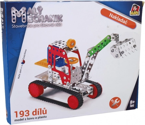 Dziecięca konstrukcyjna Ładowarka Mały Mechanik jest idealna dla małych techników. Zawiera metalowe elementy, które łatwo łączy się za pomocą śrubek i nakrętek.