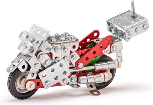 Zestaw konstrukcyjny Merkur Motocykl oferuje możliwość zbudowania dziesięciu różnych modeli motocykli i innych pojazdów. Dzięki temu zestawowi dzieci rozwijają swoją kreatywność, logiczne myślenie i zdolności manualne. Każdy model oferuje nowe doświadczenie konstrukcyjne i zapewnia nieograniczoną zabawę.