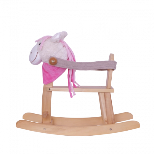 Konik na biegunach RCsale Lady Chita to idealna zabawka dla najmłodszych. Został zaprojektowany z naciskiem na bezpieczeństwo dzięki solidnej drewnianej konstrukcji wyposażonej w oparcie i pasek bezpieczeństwa, co gwarantuje bezpieczne bujanie. Konik odtwarza melodię Alfabet, która może bawić i rozweselać dzieci.