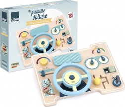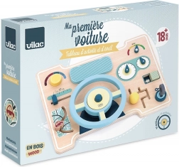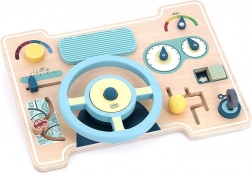 Dzięki stonowanym kolorom, bezpiecznemu wykonaniu i dostosowanemu rozmiarowi ta drewniana deska rozdzielcza jest świetnym wyborem na pierwsze kroki w przygodach Waszych dzieci.
