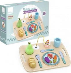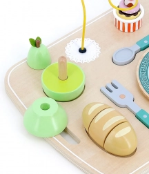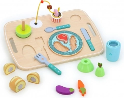 Vilac Drewniany zestaw aktywności z jedzeniem na tacy to idealny wybór na pierwsze przygody z „nakrywaniem do stołu”. Wspiera samodzielność i rozwój małej motoryki. Dzięki wesołym kolorom i przyjemnym kształtom nadaje się także dla najmłodszych.