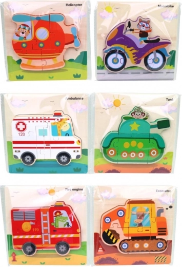 Przedstawiamy drewniane puzzle z motywem środków transportu, które są doskonałą zabawką wspierającą rozwój dziecięcych umiejętności: