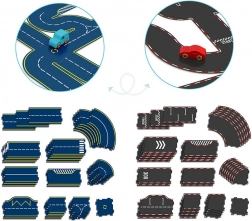 Dwustronny tor wyścigowy Vilacity jest wykonany z lekkiej, lecz wytrzymałej tektury, co umożliwia łatwe składanie i wielokrotny montaż. To naturalnie wspiera rozwój koordynacji ruchowej i motoryki małej. W zestawie znajdują się dwa drewniane autka, którymi dzieci mogą kierować, ścigać się lub tworzyć własne historie drogowe. Podczas jazdy autkami dziecko przyswaja podstawowe zasady współpracy oraz ćwiczy precyzję i koncentrację.