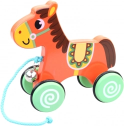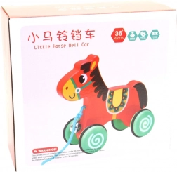 Ta drewniana zabawka do ciągnięcia w kształcie konia zapewnia nie tylko zabawę, ale także stymuluje zmysły dzięki dzwoneczkowi, który podczas ruchu wydaje delikatny, dźwięczny odgłos. Wykonana jest z wysokiej jakości drewna i ma wymiary 16 cm, co czyni ją łatwą do prowadzenia dla małych dziecięcych rączek.