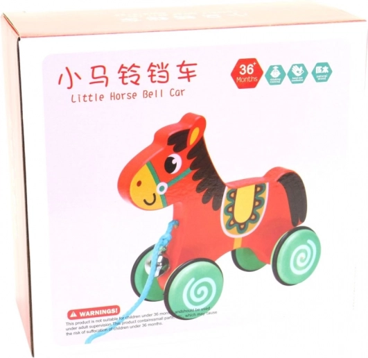 Drewniane pchadło Koń 16 cm dla dzieci od 3 lat z delikatnym dzwoneczkiem.