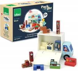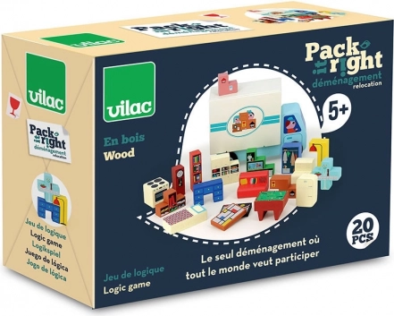 Drewniana gra logiczna Załaduj to poprawnie marki Vilac to inteligentna łamigłówka dla dzieci, które lubią rozwiązywać, jak prawidłowo ułożyć meble w samochodzie przeprowadzkowym. Gra inspirowana ilustracjami Ingeli P. Arrhenius pomaga rozwijać myślenie logiczne, orientację przestrzenną i małą motorykę. Dzieci mają do dyspozycji 19 elementów mebli, które muszą ułożyć w pojeździe.