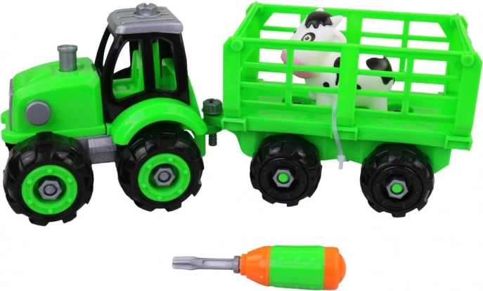 Ten traktor do skręcania z przyczepą to świetna zabawka dla dzieci od 3 lat. Ma atrakcyjny design, który przyciąga uwagę i bawi. Dzieci mogą składać i rozkładać traktor oraz przyczepę, co pomaga rozwijać ich motorykę małą.