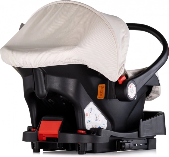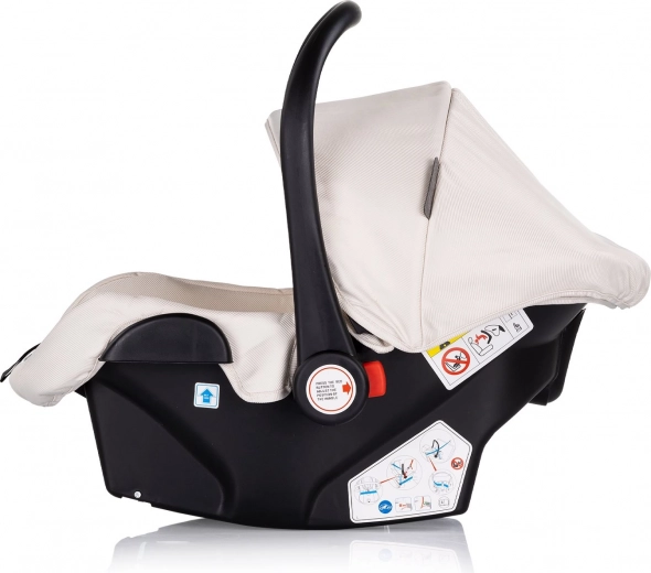 Praktyczne funkcje, takie jak regulowana rączka do przenoszenia, zdejmowana i prana ręcznie tapicerka (do 30 °C), kołysząca podstawa dla ukojenia oraz zdejmowana składana budka, ułatwiają codzienne użytkowanie w domu i w podróży. Nie montuj fotelika na siedzeniach z aktywną poduszką powietrzną.
