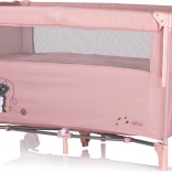 Łóżeczko jest przeznaczone dla noworodków i dzieci o masie do 15 kg. Ma atrakcyjny zwierzęcy motyw oraz składaną ściankę, która oferuje dwa poziomy użytkowania. Z jednej strony znajduje się kieszeń na akcesoria oraz wejście na zamek dla łatwego dostępu do dziecka.