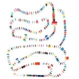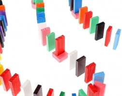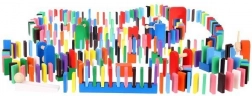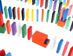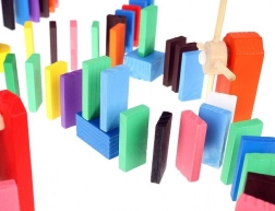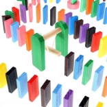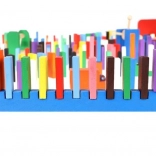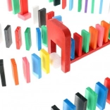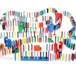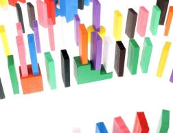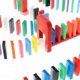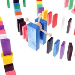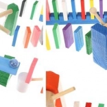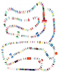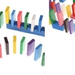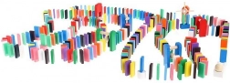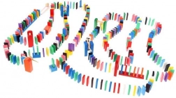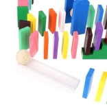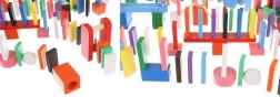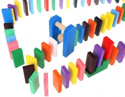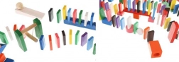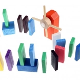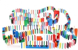 Zestaw zaprojektowano tak, aby pobudzał kreatywność dziecka, umożliwiając tworzenie różnych konstrukcji, takich jak zwierzęta, domy, pojazdy i wiele innych. Zestaw zawiera także wiele dodatkowych elementów, które poszerzają możliwości budowania. Tymi elementami są na przykład huśtawka, schody, wiatrak, mosty i kilka innych części. Drewniane klocki domino są bardzo wytrzymałe, a przede wszystkim bezpieczne dla dzieci! Każdy klocek ma zaokrąglone krawędzie i jest pokryty specjalną farbą, która nie farbuje i nie zawiera żadnych toksycznych ani chemicznych substancji.