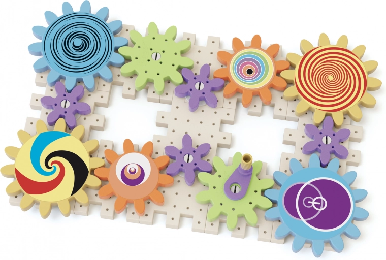 Zestaw Kalejdoskopowe koła zębate daje dzieciom możliwość stworzenia efektownego łańcucha z kołami zębatymi o różnej wielkości, które kręcą się jak na karuzeli. Składa się z 38 części, wśród których znajdują się perforowane płytki, bolce oraz naklejki z kolorowym nadrukiem. Podczas zabawy dzieci poznają podstawowe zasady mechaniki i odkryją efekty optyczne, które są naprawdę magiczne.