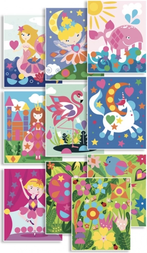 Zestaw składa się z 10 wstępnie zadrukowanych obrazków (21 × 17 cm) oraz 5 arkuszy naklejek z motywami takimi jak wróżka, księżniczka, kucyk, jednorożec i inne. Praktyczne etui służy również jako przestrzeń do przechowywania na dalsze tworzenie.