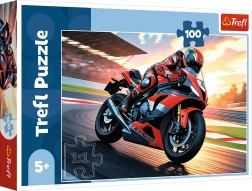 Ciesz się radością układania z puzzlami Trefl Szybki Motocyklista o 100 elementach. Idealne dla miłośników motocyklowych przygód.