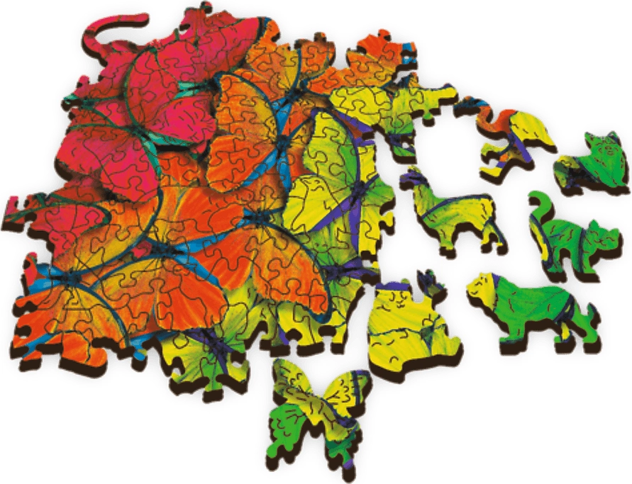 Puzzle TREFL Tęczowe motyle to wysokiej jakości zabawka z naturalnego materiału. Wykonane z płyty pilśniowej i wycinane laserowo, co zapewnia gładkie krawędzie i łatwe dopasowywanie elementów.