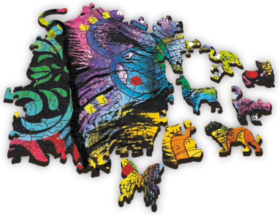 Drewniane dwustronne puzzle marki TREFL oferują unikalny design oraz gładkie krawędzie dzięki technologii cięcia laserowego, co zapewnia, że elementy idealnie do siebie pasują.