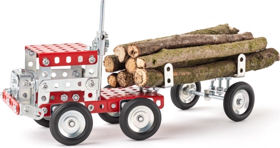 Metalowa konstrukcyjna zabawka Merkur to klasyka czeskich warsztatów. W tym zestawie znajdziesz wszystko, co potrzebne do złożenia ciężarówki i kolejnych dziewięciu modeli. Elementy z wytrzymałego metalu, śrubki i nakrętki pewnie trzymają konstrukcję razem, dzięki czemu dzieci i dorośli mogą cieszyć się stabilnymi, funkcjonalnymi modelami i wielokrotnym budowaniem.